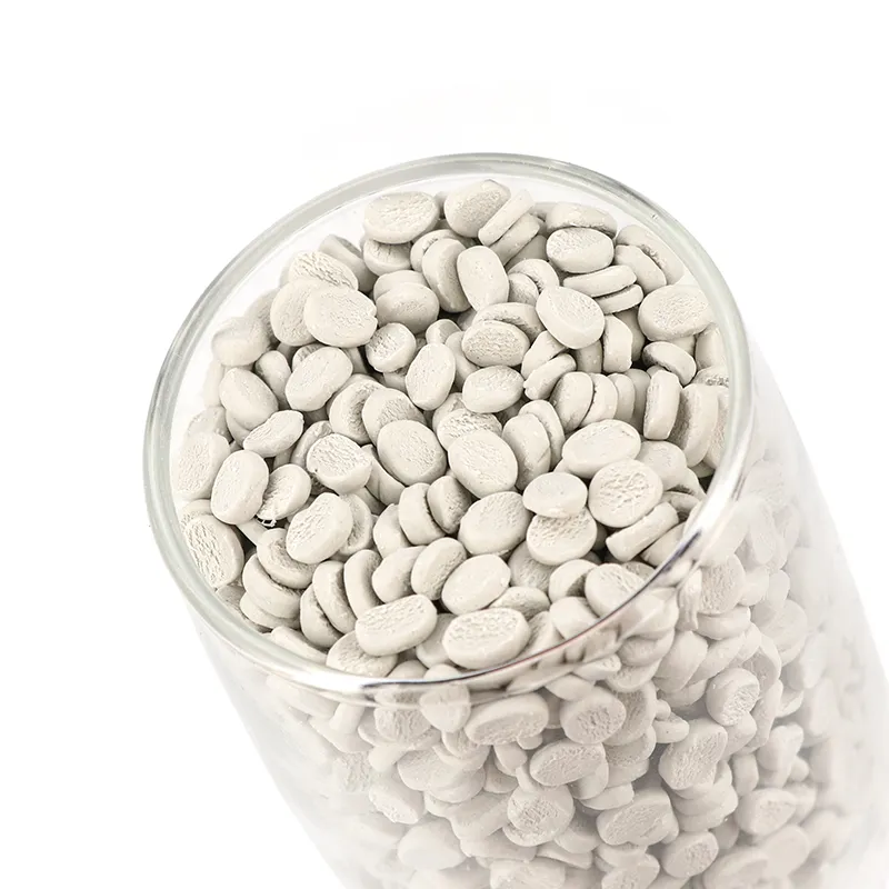Opis izdelka: Masterbatch s kitajskim polnjenjem je pripomoček za predelavo plastike, sestavljen iz nosilne smole, polnil (kot je kalcijev karbonat, smukec) in dodatkov (disperzanti, sredstva za površinsko obdelavo itd.), ki se večinoma uporabljajo v proizvodnji poliolefinskih izdelkov. Izdeluje se v granule s predhodnim mešanjem visokokoncentriranih polnil in smol, osnovna smola pa se doda sorazmerno med oblikovanjem plastike, da optimizira učinkovitost obdelave in zmanjša stroške. Nosilna smola mora biti kompatibilna z matrično smolo in imeti primerno tališče, dodatki pa zagotavljajo enakomerno disperzijo polnil. Ta material se pogosto uporablja na področjih, kot so filmi, tkane vrečke in brizgani izdelki. Lahko poveča togost in zmanjša stopnjo krčenja, vendar lahko vpliva na preglednost in žilavost.